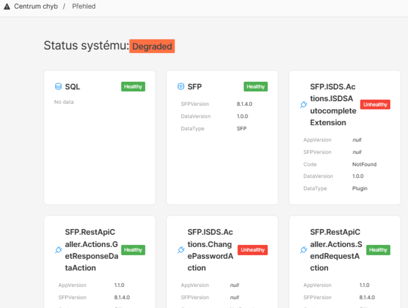 Healthcheck zobrazuje aktuální stav systému i jeho jednotlivých komponent.